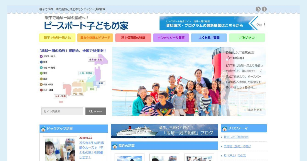 こちらのページでは、子どもたちの地球一周の様子を紹介したり、モンテッソーリ教育の詳細も載せています。