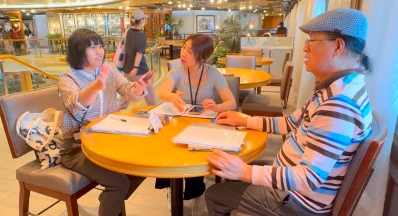 せっかく様々な地域から乗船されているので、ぜひ色んな方から感想を伺いたい!ということで時には通訳をしてもらいながら日本、韓国、中国、メキシコから計6組の家族、ご夫婦にインタビューしました。