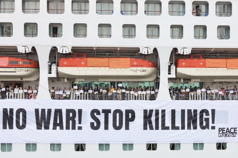 ピースボートHP:NO WAR! STOP KILLING! 戦争反対を掲げてVoyage122が神戸に帰港しました